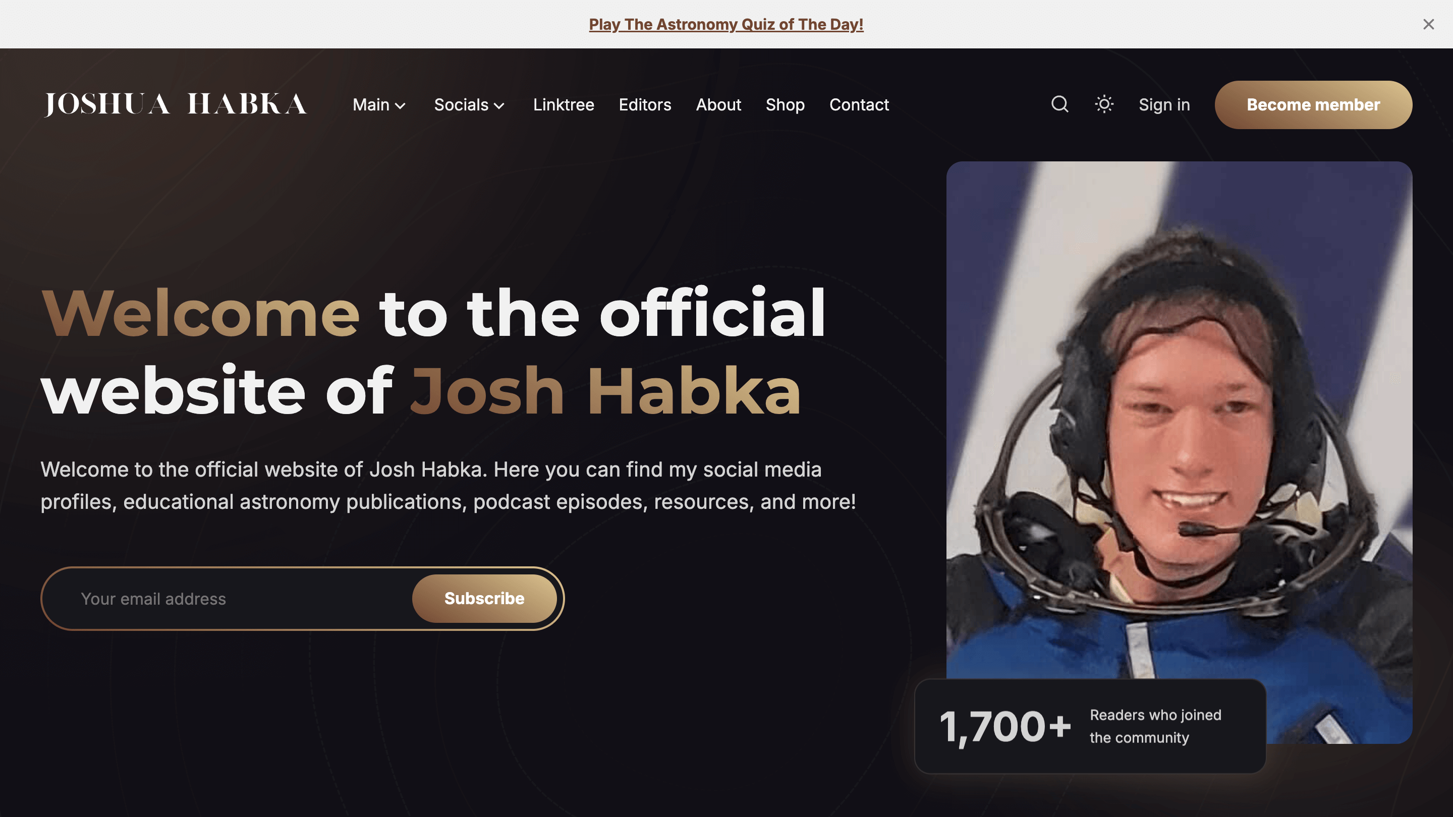 Josh Universe is an analog astronaut, science communicator, biohacker, and CEO of Astrochain. Josh Universe works with C-Suite clients to position their businesses as industry leaders through beautiful and high-conversion Ghost websites.
